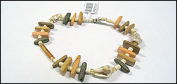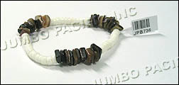 - jewelry made from wood and shell. Natures best. Purely handmade. It is an article of jewelry which is worn around the wrist. Beautiful and unique fashion bracelets accessories are manufactured by Jumbo Pacific Inc from natural components like leather, cloth, hemp, plastic or metal, and sometimes contain rocks, wood, and/or shells. View some samples below. |